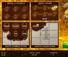 Do you want to be a millionaire? Take 2 chances to win up to €1 million in an instant on this exciting scratchcard.